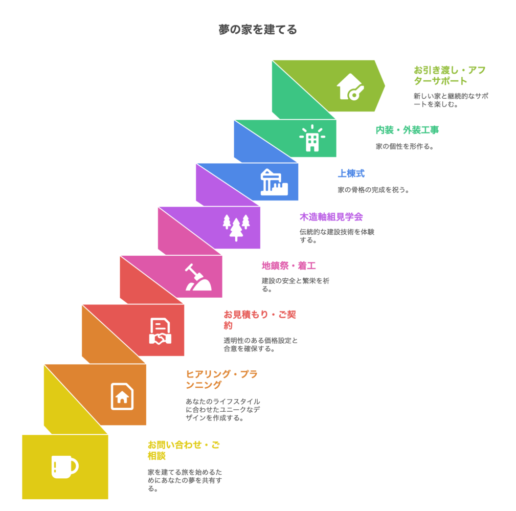 「手刻み」の技が息づく「木造軸組工法」の家が、どのようにして家族の歴史を刻む「至福の空間」となるのか、その全工程を分かりやすくご紹介します。