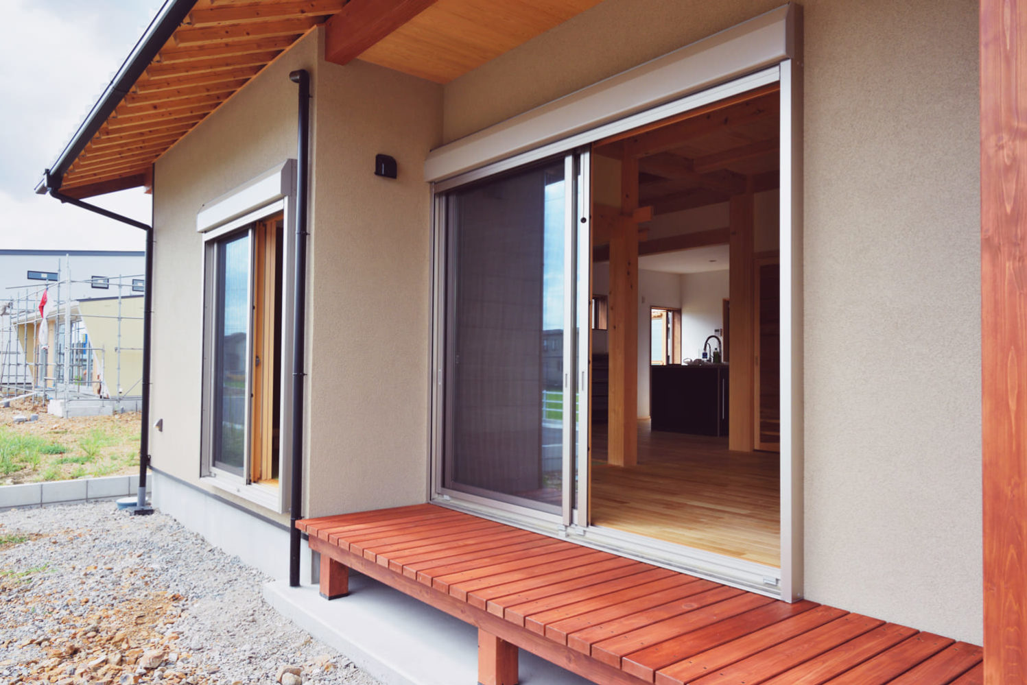 深い軒が日差しや多少の雨を遮ってくれるので、季節を問わず快適に過ごせます。