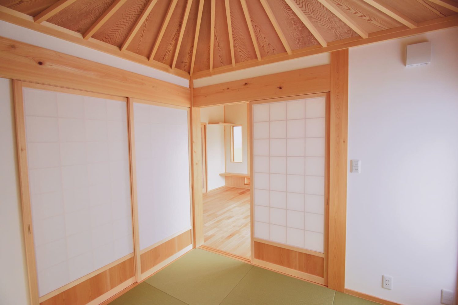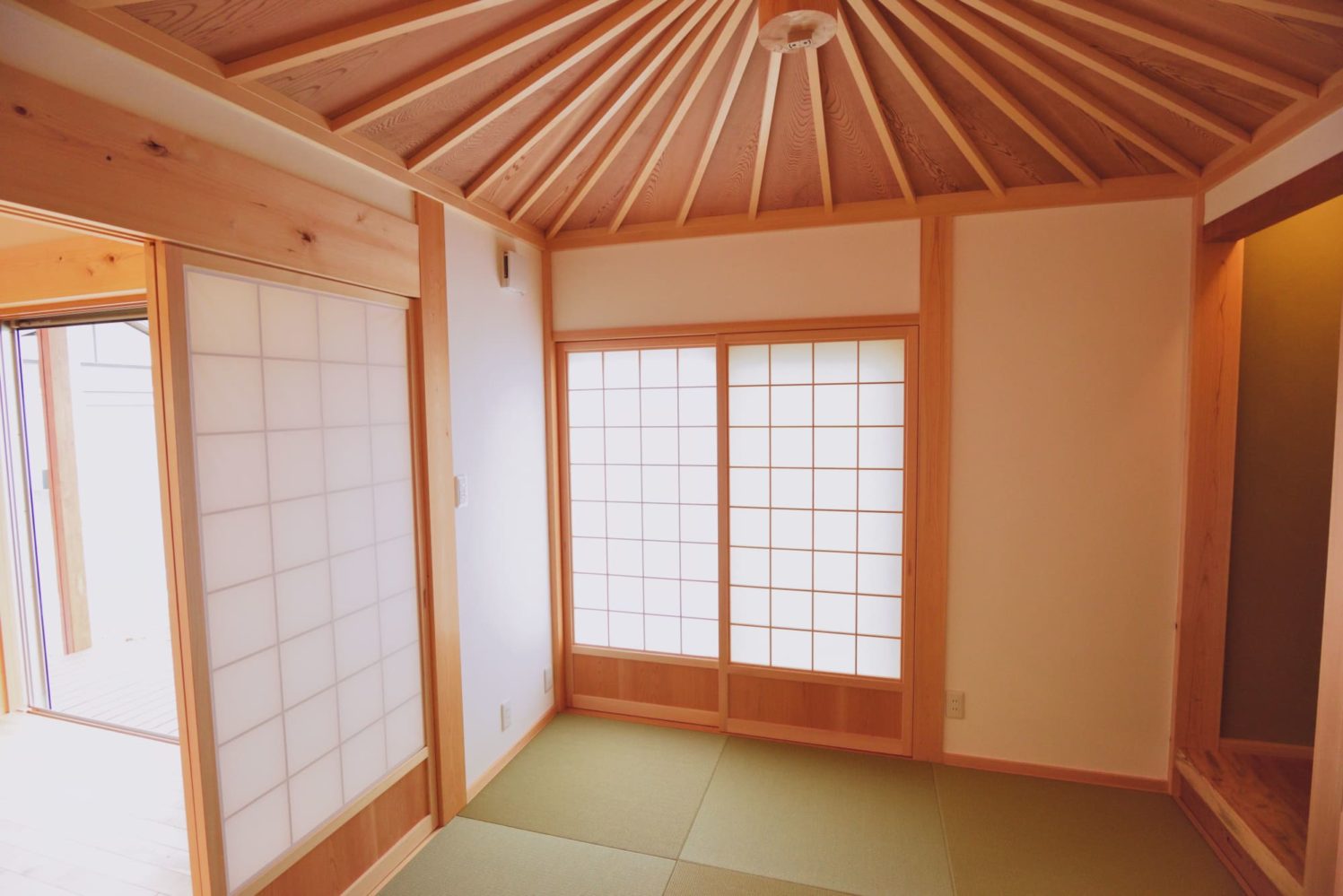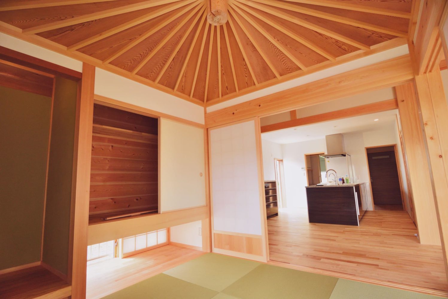 リビングの隣には、息をのむほど美しい「傘天井」を持つ和室をしつらえました。