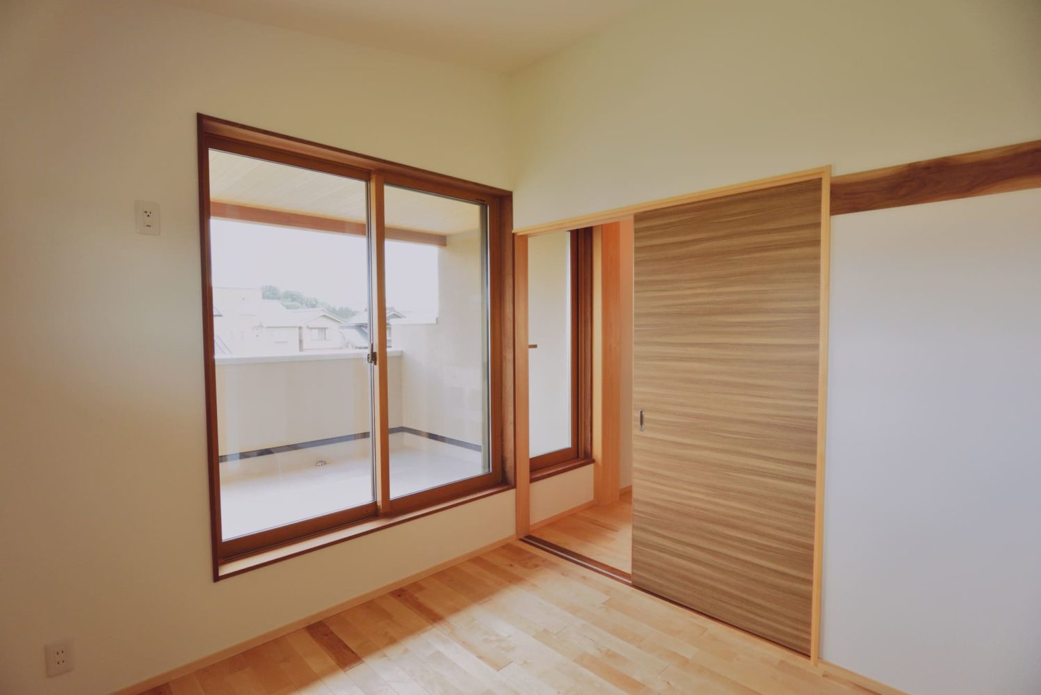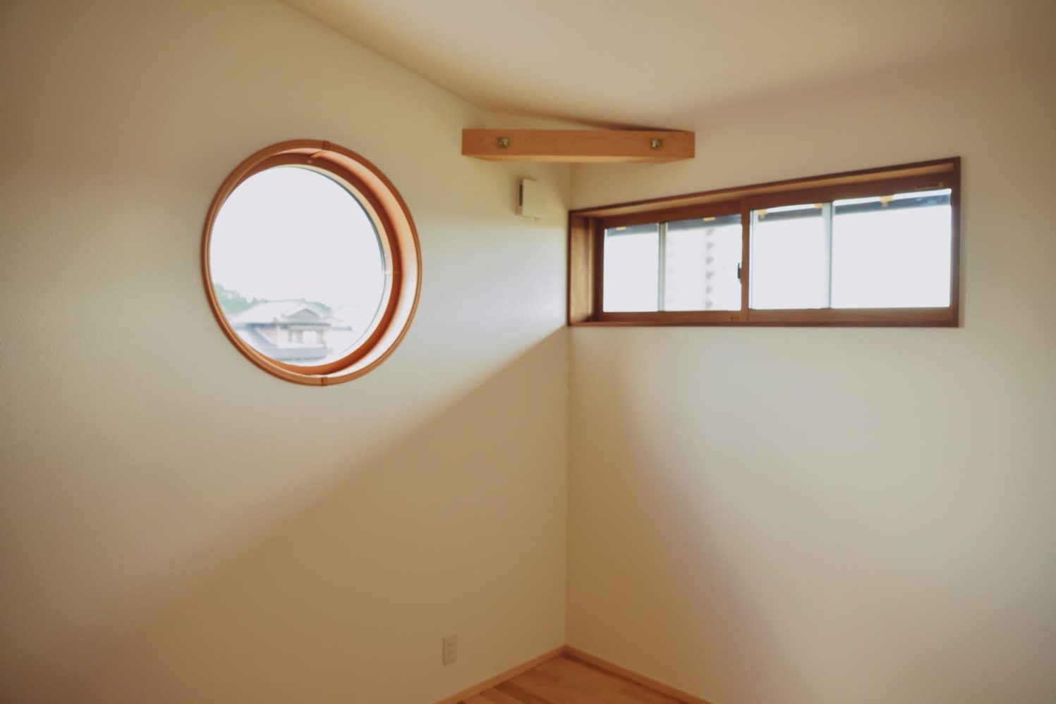 2階の洋室には、遊び心あふれる丸窓を設えました。
