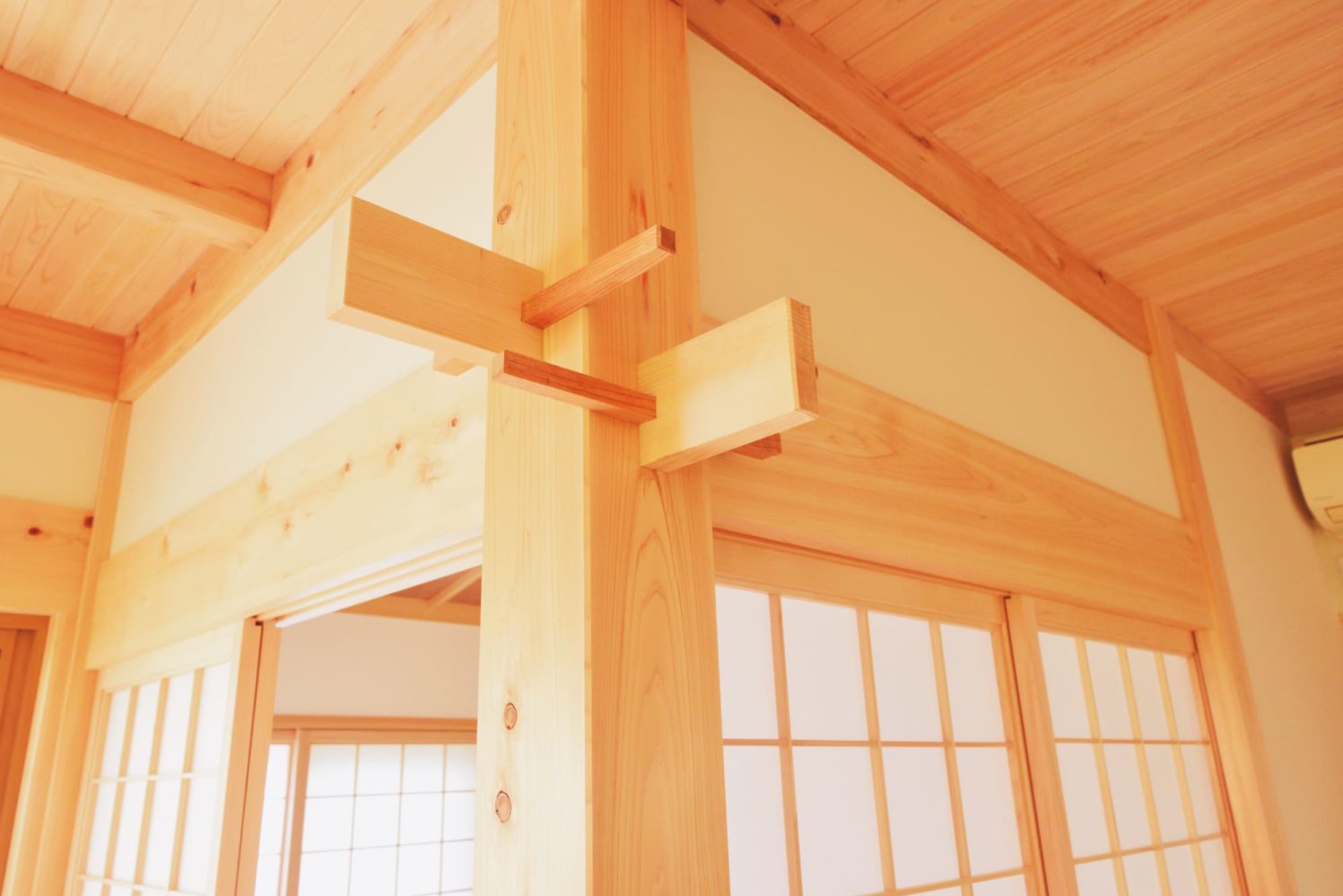 扉を開けば、清々しい木の香りが優しく出迎え、大胆に組まれた梁や柱が、何世代にもわたる家族の暮らしを末永く支え続ける安心感を物語ります。