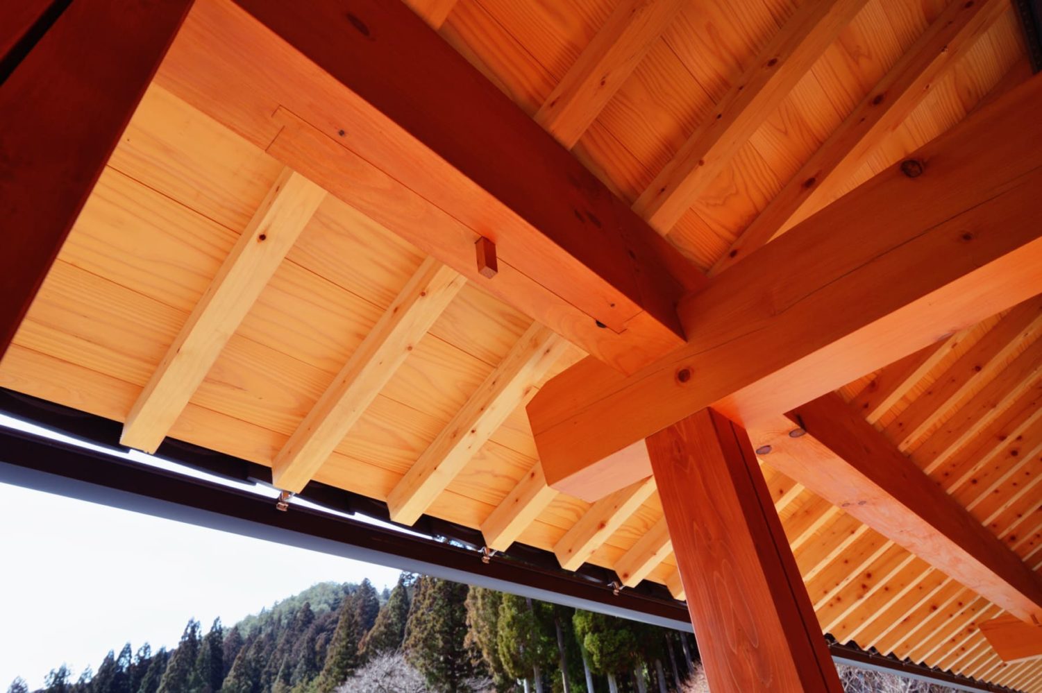 中央の一点から放射状に広がる垂木は、まさに職人技の結晶。