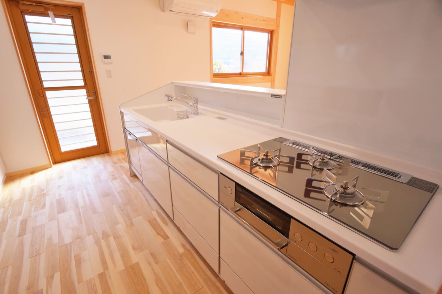 木のカウンターが温かみを添え、毎日使う場所だからこそ、ホッと一息つける心地よい空間になるようデザインされています。