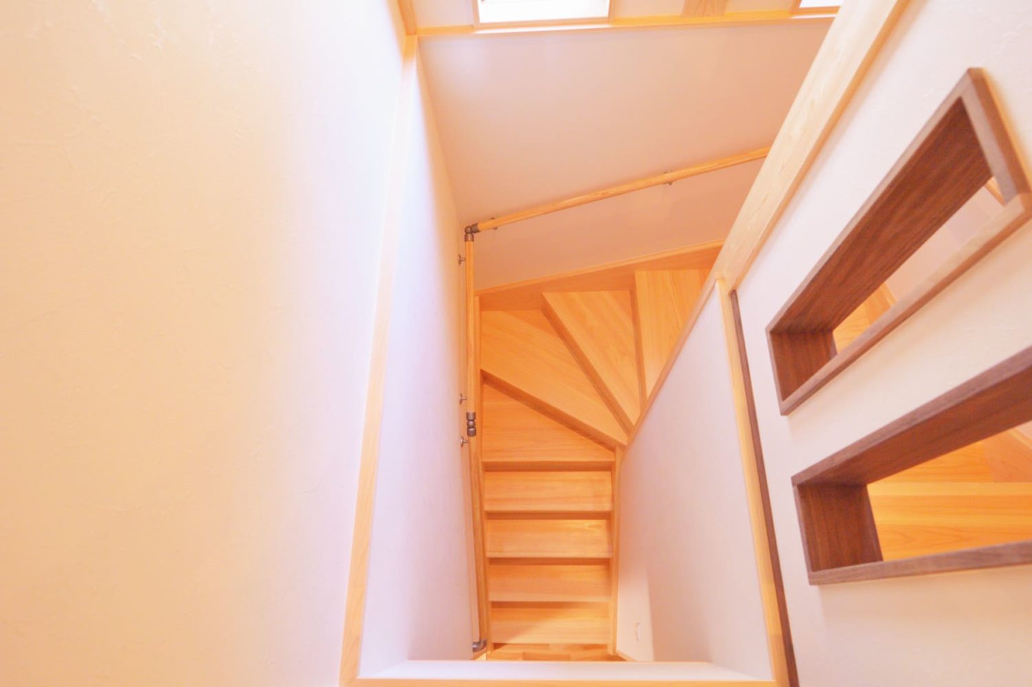 【階段】光と木が踊る、美しい螺旋。上り下りさえも、心弾むひとときに。