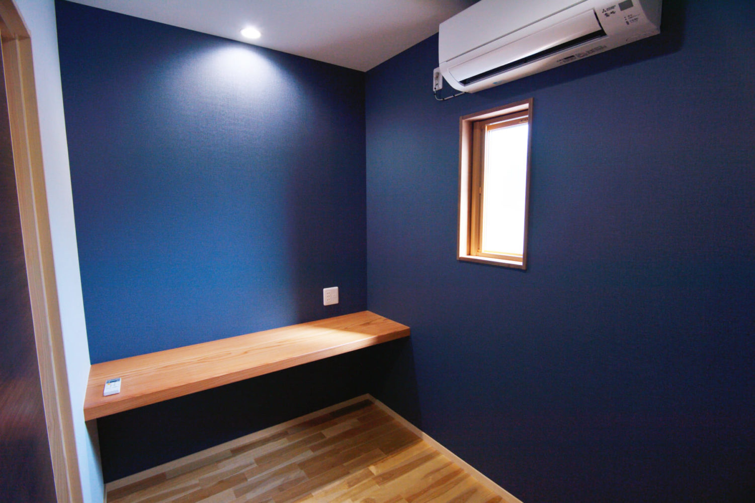 ネイビーのアクセントウォールが印象的なこの部屋は、ご主人の書斎や、お子様の勉強部屋など、使う人の夢を叶えるプライベート空間です。