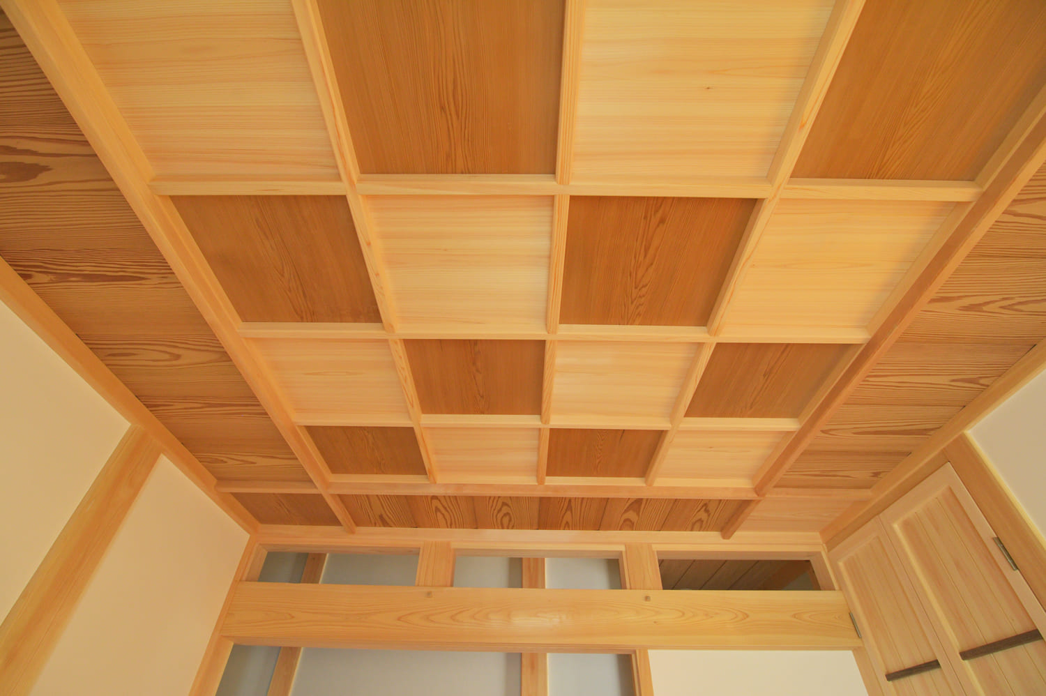 扉を開けた瞬間、まず目に飛び込んでくるのは、職人の技が凝縮された美しい「格天井(ごうてんじょう)」。