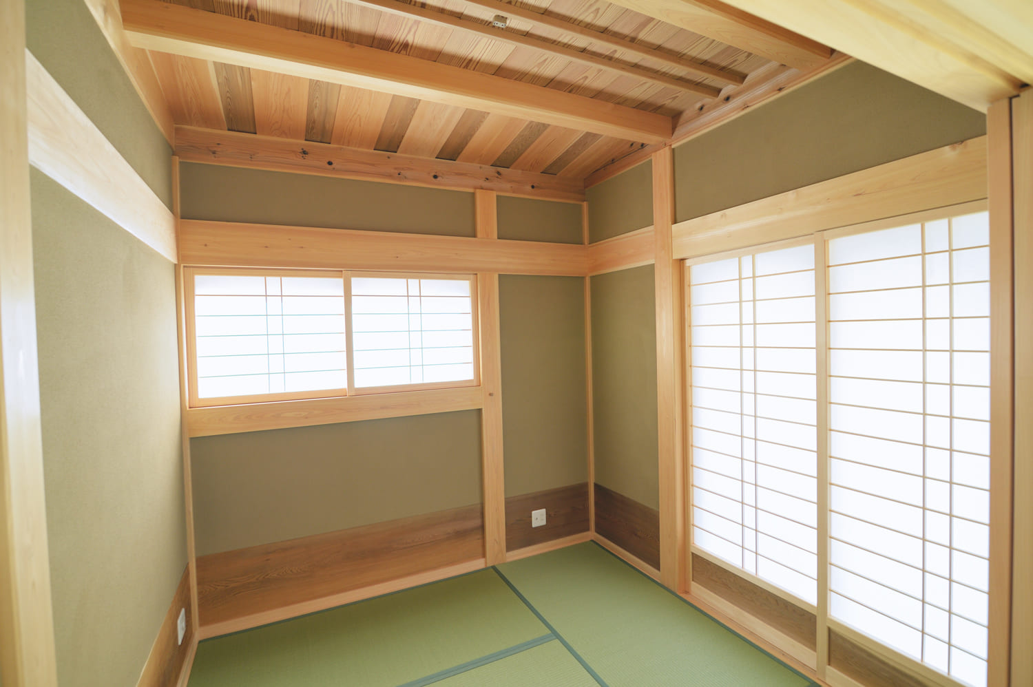 障子を通して届く柔らかな光が、畳と木の香りに満ちたこの部屋を、極上の安らぎ空間へと誘います。